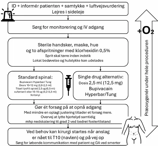 - Det kan overvejes at anvende ”Rapid-sequence-spinal”. Principperne kan optimere tidsforbruget til etablering af anæstesi (Figur 3)