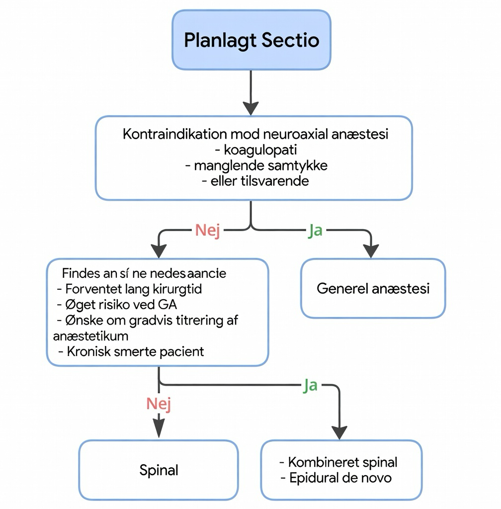- Det anbefales, at neuroaksial teknik anvendes ved de fleste sectioer fremfor generel anæstesi